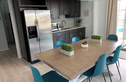 The first floor Family Room includes a full-size refrigerator and wet bar for easy access to food and snacks as well as a TV watching area with a large SmartTV for family movie nights. For those wanting to enjoy the outdoor fun, there is a deck located off the back for easy access. After a day of playing in the backyard, kick back and relax in one of the four bedrooms - two bedrooms offer King beds with private baths while the third bedroom sports a Double over Double Bunk and the fourth bedroom offers a Twin Bunk and shares a bathroom with the Family Room. All bedrooms include a SmartTV with streaming services available.