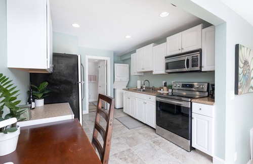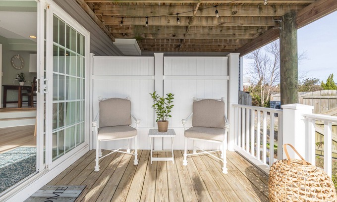 This unique place has a style all its own with the beach around the corner and bay water surrounding the property. The cozy newly remodeled ground level apartment is located just 0.3 mile (5 minute walk) to the beach. Full of natural light; private entrance sliding glass doors open to quaint porch to relax with a morning cup of coffee or cold drink after a day at the beach. You will get the best of Sandbridge with this location; quiet neighborhood bay side with easy walk to beach.