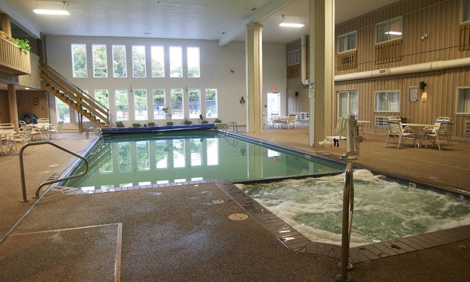 An indoor pool and a seasonal outdoor pool are on site.
