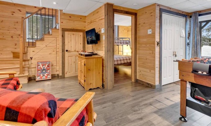 Nestled in Amherst, this 3-bedroom, 2-bathroom vacation home brings it all within your reach. Fans of nature and the outdoors will love being 16 minutes by car from Papineau-Labelle Wildlife Reserve and 54 minutes from Lac Mercier. Tackle the 51-minute drive to Scandinave Spa Mont-Tremblant or the 52-minute drive to Golf Le Diable.
