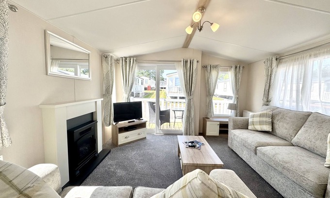 This modern 2-bedroom caravan offers a comfortable and well-equipped retreat for your stay. The spacious layout includes a kitchen, dining, and living area, leading to a balcony decking with outdoor furniture – perfect for relaxing. The fully equipped kitchen features a gas cooker, fridge, freezer, microwave, and all the necessary cutlery, crockery, and glassware for self-catering.