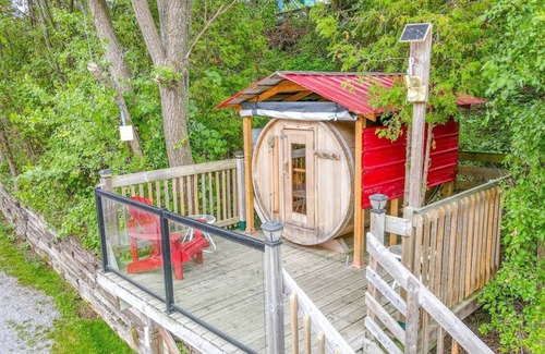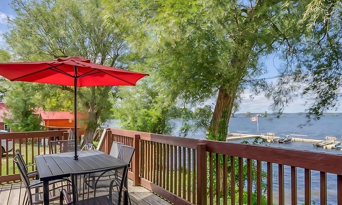 This adorable 2-bedroom cottage in Harwood is perfect for your escape. 4 meter from the lake with a fire pit on the shore. There are 2 full beds, a cozy living room with a futon, and a refreshing shower in the bathroom, guests will feel right at home. Enjoy the enchanting surroundings and take advantage of amenities like WiFi, and AC. There is a lake view sauna and heated pool, a few deck to enjoy scenery. We have a big dock with benches and we have a choice of boats. We look forward to welcoming you to our place.