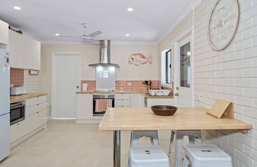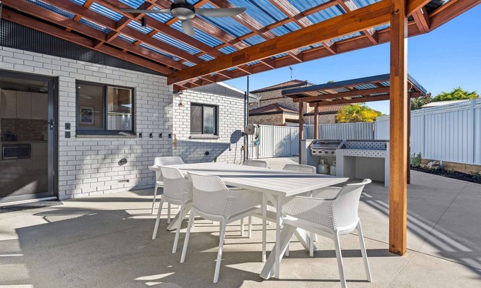 Sandy Shores Getaway is a recently renovated beachside retreat, providing the perfect setting for family vacations in Mandurah, Western Australia. The single-story home offers a seamless blend of comfort and convenience, with a private path leading straight to the sandy shores. The interior is beautifully refreshing, featuring a fully equipped kitchen, air conditioning, and ceiling fans for a pleasant stay.