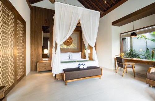 Located in Ubud, 5.1 miles from Tegallalang Rice Terrace, Sanggraloka Ubud provides accommodations with an outdoor swimming pool, free private parking, a fitness center and a garden. Among the facilities at this property are a kids' club and a shared lounge, along with free WiFi throughout the property. The property has room service, a 24-hour front desk and organizing tours for guests. The resort will provide guests with air-conditioned rooms with a desk, a coffee machine, a fridge, a minibar, a safety deposit box, a flat-screen TV, a terrace and a private bathroom with a bidet. Each room includes an electric tea pot, while selected rooms contain a balcony and others also offer pool views. Guest rooms include a closet. An à la carte, Full English/Irish or American breakfast is available at the property. At Sanggraloka Ubud you'll find a restaurant serving Indonesian, Mediterranean and Pizza cuisine. Vegetarian, dairy-free and vegan options can also be requested. The accommodation offers a hot tub. You can play darts at Sanggraloka Ubud, and the area is popular for cycling. Neka Art Museum is 7.1 miles from the resort, while Blanco Museum is 8 miles away. Ngurah Rai International Airport is 28 miles from the property.