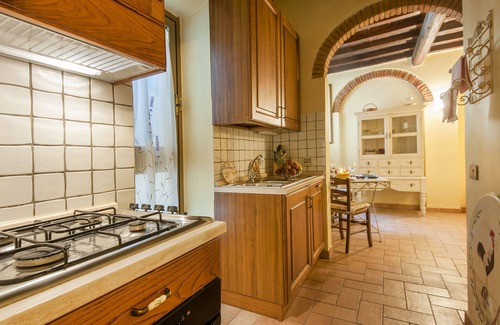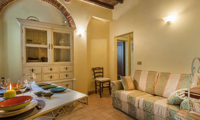 The apartment is in typical Tuscan style with beams and joists. Holds 1 large master bedroom, 1 bathroom with shower, 1 kitchenette with oven, microwave, dishwasher, electric kettle, toaster, smoother and small little lounge with flat LED TV and sofa bed. In both bedroom and lounge air conditioning is available. Internet WI-FI connection is free and available together with washing machine.