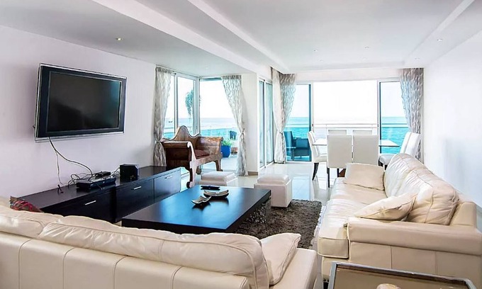Comes with a flat-screen TV with cable (200+ channels), fan, balcony, beautiful city and ocean views, WIFI and a restroom for visitors. The designer dining table has space for 8 people.