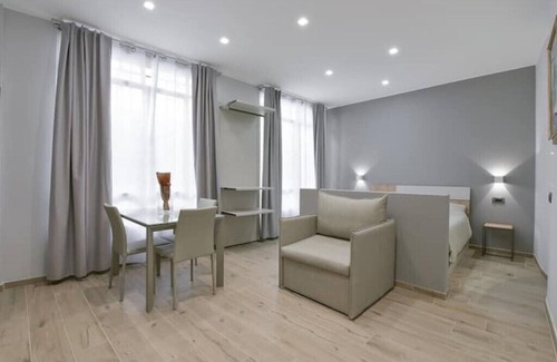 This 1-bedroom, 1-bathroom rental features a sofa bed and air conditioning. Bathroom amenities include a hair dryer, a bidet, and towels. The kitchenette is equipped with cookware and spices. And because there's a washer and dryer, you can go a bit lighter on your packing. Other amenities include bed sheets, an ironing board, and heating.