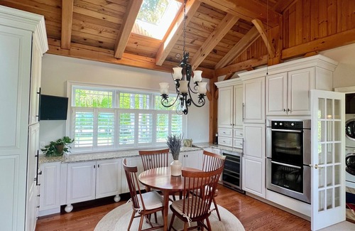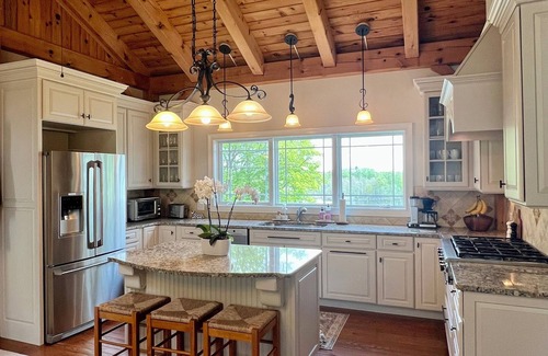 Newly available for summer 2025! Spacious, timber frame lake house on tranquil Lake Lonely in Saratoga Springs.