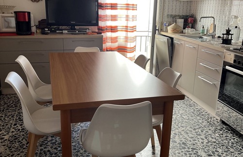 Coquette house consists of a comfortable kitchen (fridge-freezer, stove with oven - flat screen TV, radio, microwave - coffee machine - washing machine -clim) 2 bathrooms (each with a shower, a wc, bidet and washbasin - provision of a hair dryer) also available Getting a table and iron) 1 room with a bed 2 people and a bedroom with bunk beds 2x2 2 beds drawers (or 6 real beds) one balcony of 6 m² and a terrace of about 35 sqm (with garden furniture - deckchairs and a barbecue)