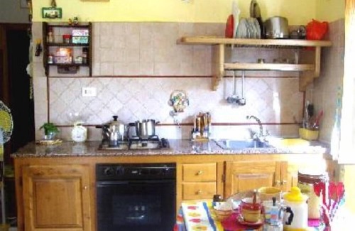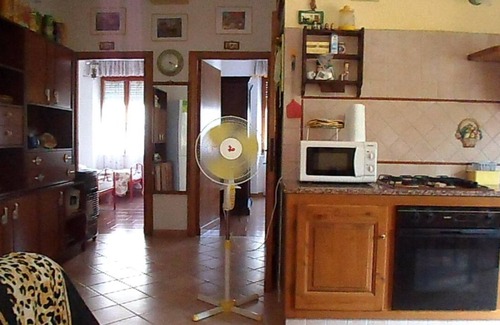 Our guests' cars can be parked in front of the house in a very quiet street. The house is accessed independently. It is located on a raised floor above the street and is accessed from a courtyard-terrace. The apartment includes a habitable and furnished veranda of 13 square meters which is in front of the kitchen-living area (25 m2) where there is a well-equipped cooking area with oven, plate, hobs, sink, chest of drawers and food storage. In the same room there is a refrigerator complete with freezing compartment, a table, 6 chairs, two armchairs, a coffee table and a television as well as a cabinet containing plates, glasses, pots and everything else needed for the kitchen. At the end of the living room there are three doors which lead to: