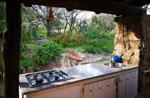 From the large and comfortable sofa that dominates the front porch of the house, you can enjoy a spectacular view of the islands of Tavolara and Molara, while, seated at the typical granite table placed in the back porch, you can savor the beauty of the Mediterranean scrub inserted in huge rocks of Sardinian granite.