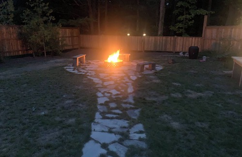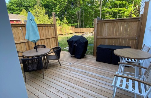 Outside enjoy your own private backyard, with BBQ and fire pit and a deck with a dining area.