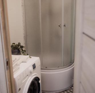 BathroomShampoo, Body soap, Toilet, Free toiletries, Shower, Towels, Private bathroom, Toilet paperGeneralKey access, Iron, Smoke Alarm, Trash cans, HeatingKitchenKitchen, Kitchenware, Washing machine, Refrigerator, Wine glasses, Electric kettle, Dining table, Kitchenette, StovetopMedia & TechnologyFlat-screen TVLiving AreaDining areaBedroomWardrobe or closet, LinensBuilding CharacteristicsPrivate apartment in building, DetachedRoom AmenitiesClothes rack |