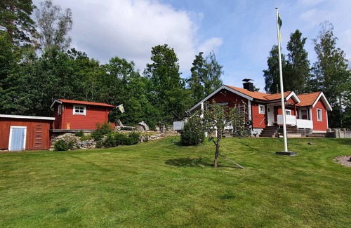 "Webersons Ferienhaus" is a Swedish country / gatehouse that was extensively renovated and expanded in 2009. A very attractive furniture and extensive equipment await you. The house has its own sauna, rowing boat and canoe. Children can play and run around on the spacious property. Soccer goal, double swing and sandpit invite you to do so. A great grill and campfire place makes the adventurer's heart beat faster.