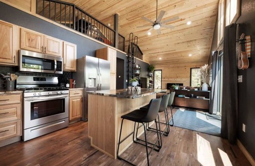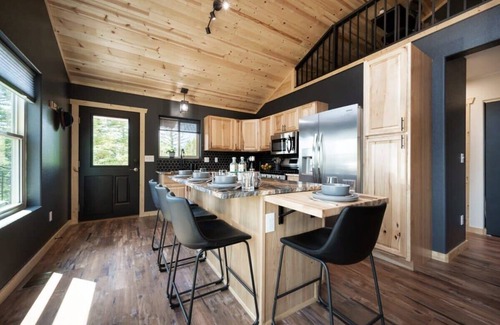 Retreat in the mountains of Colorado at this private two-bedroom, two-bath cabin with a steam sauna. Surrounded by Ponderosa Pines and Aspens in the beautiful Pikes Peak region, come unwind and recharge. This home is located in a nationally registered dark sky zone, and offers gorgeous mountain views from the porch. The cabin boasts an open living room, fully equipped kitchen, and inviting dining area. The space was designed and outfitted so you can enjoy all the comforts of your own home, while on vacation.