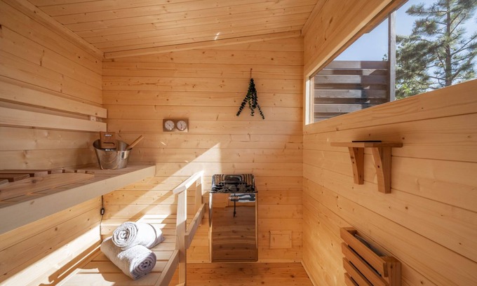 +For a rejuvenating experience, indulge in the soothing warmth of our private sauna, offering peace and awe-inspiring views of natural surroundings.