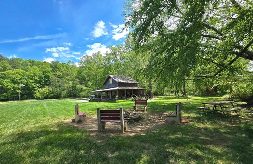 Saunders Cabin Wifi. Creek w/fire pit, cornhole, ax board, horseshoes. big field | Cabin in Lenoir