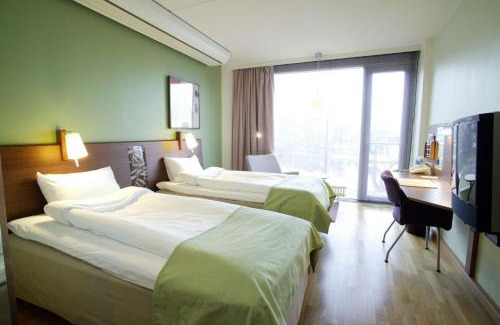 This environmentally friendly hotel is found next to the River Stångån, 5 minutes’ walk from Linköping Central Station. All rooms have floor-to-ceiling windows. Wi-Fi, gym and sauna access is free. Scandic Linköping City’s bright rooms have a 21-inch flat-screen TV with cable channels as well as a private bathroom with a shower. The in-house restaurant and bar has large windows and a terrace offering river views. Guests can choose from an à la carte menu inspired by Mediterranean flavors. Scandic Linköping City also has free guest bicycles and a small lobby shop that sells drinks, snacks and toiletries.