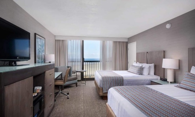 This 280 sf 2 Queen Beds, Non-Smoking, Top Floor, Ocean View features: