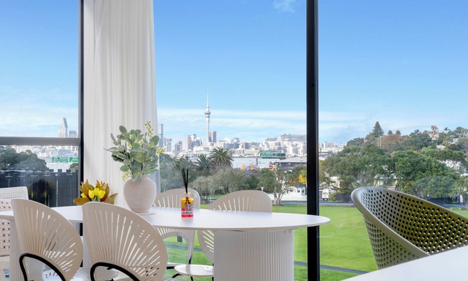 The property offers a serene environment with picturesque views of the city skyline, making it a perfect retreat for those looking to explore Auckland.