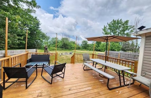 Escape to a tranquil retreat at this 4-bedroom house in Skaneateles. Each room boasts either a full or queen bed, ensuring a restful night's sleep for all guests. With 3 bathrooms, including a relaxing bathtub, everyone can freshen up in comfort. Immerse yourself in the enchanting surroundings of Skaneateles at our gorgeous house.