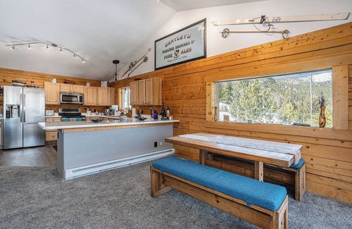 The inviting mountain home provides a warm and comfortable atmosphere, perfect for couples, families, or small groups. Enjoy expansive mountain views from the deck, sip your morning coffee while breathing in the fresh alpine air, and unwind in a peaceful, secluded setting.