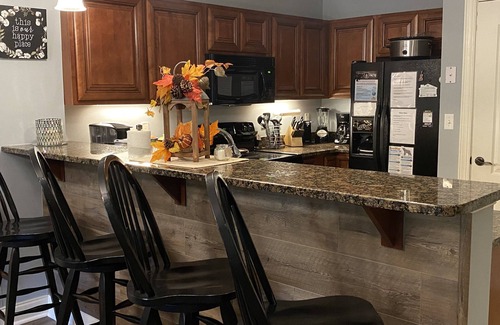 Fully furnished kitchen with upgraded granite top counter & bar area is ready for home cooked meals or awesome appetizer preparation. Additional conveniences: dishwasher, microwave, washer/dryer along with blender, toaster, mixer and electric knife. Caffeine Lovers; fear not, both Keurig & Traditional coffee makers are available.