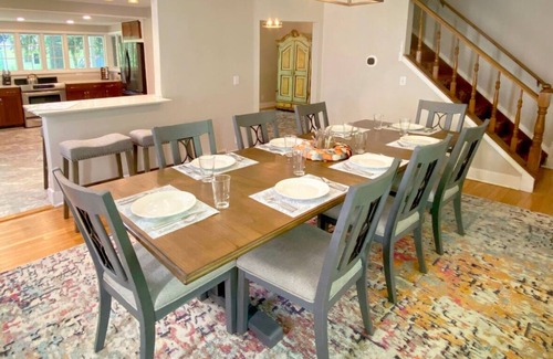 Escape to this spacious Sawyer MI home, perfect for multi-family stays! Sleeps 14 with a first floor bedroom & zero entry shower for accessibility. Enjoy ravine views, a firepit and a brand new pool (completed spring 2025). Just a short walk to Lake Michigan & Warren Dunes. Ideal for family gatherings and relaxing getaways.
