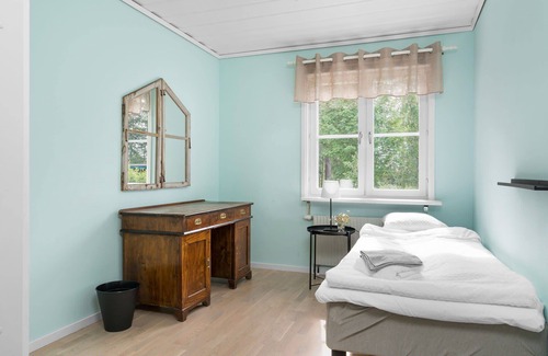 Welcome to our charming seaside retreat, nestled in quiet Örviken, where you can embrace the beauty of nature and stay connected to the vibrant city life. Our well-appointed home can comfortably accommodate up to five guests across five spacious bedrooms, making it perfect for friends, families or colleagues seeking a peaceful haven near Northvolt Ett. As you step inside, a fully-equipped, open-concept kitchen invites you to prepare delicious home-cooked meals. The kitchen features all necessary modern appliances, including a microwave, oven, refrigerator, stove, coffee maker, dishwasher, and cooking essentials. Enjoy your meals in the adjoining dining area or step outside on the terrace for an alfresco experience amidst lush surroundings. Our five inviting bedrooms ensure a restful night's sleep, with comfortable beds, fresh linens, ample storage space, and hangers. Two warm and welcoming bathrooms provide everything you need for a refreshing shower or a relaxing soak in the bathtub, including soft towels, hairdryer, shampoo, and essentials. A dedicated laundry area with a washer and dryer allows you to travel light and always have fresh clothes at hand. The cozy living area is an ideal spot to wind down after a long day, featuring plush seating, an indoor fireplace, and a flat-screen TV with cable for your entertainment. The dedicated workspace with strong Wi-Fi ensures you can stay connected and productive during your stay. We also offer amenities such as heating, air conditioning, window guards, and safety equipment like smoke alarms, carbon monoxide alarms, fire extinguishers, and a first aid kit for your peace of mind. The property includes a gorgeous, spacious backyard with a BBQ grill, perfect for hosting intimate gatherings with loved ones or colleagues. Free parking on the premises and a lockbox for seamless check-ins and check-outs further enhance your stay.