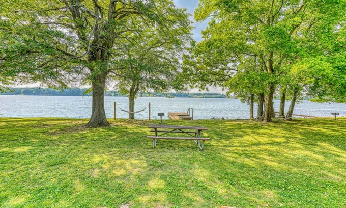 Excellent view of the lake! Sit back and enjoy the Peacefulness of this gorgeous view of the water. Feel the calm. Sit on the back porch or fall asleep in the hammock. Just escape for a while. Pull your boat up to the dock. Play all day on the water. Grill out under the trees. Watch the amazing sunsets! Cuddle up in your king-size bed in the master bedroom. Or spend the weekend at the Robert Trent Jones golf course. Or perhaps fishing all day is more your style. Pets are welcome and there is a one-time $50 pet fee.