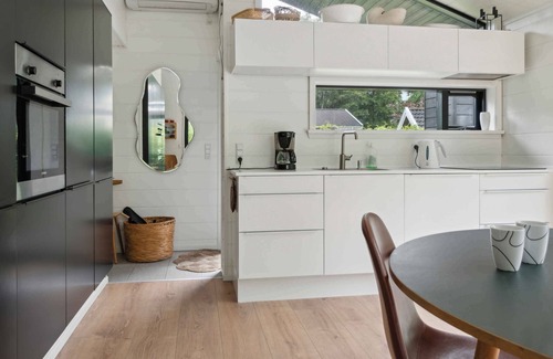 In the picturesque holiday home area in Asserbo, surrounded by lush forests and serene nature, you will find this modern and stylish holiday home, built in 2020. The holiday home is furnished with a bright and spacious kitchen/living room, where the well-equipped kitchen contains everything you need to prepare delicious meals. Here you will find an induction hob, fridge/freezer, and dishwasher, making both cooking and cleaning easy and convenient.