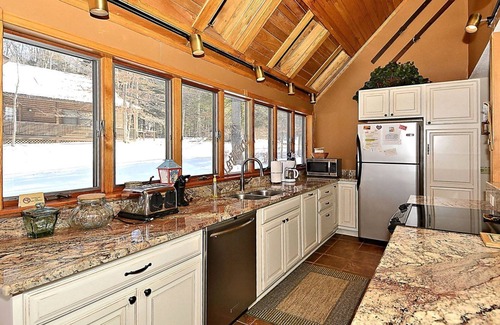 Schussboomer's Retreat is a fabulous remodeled home, and is a very short walking distance to hike/bike trails. Has 4 bedrooms, 3.5 baths with 1 king bed, 4 queens and double futon in loft. This lovely home features two large family rooms, one with a wet bar, both with gas fireplaces. Large kitchen, 4 flat TV's with DISH high definition, great channel availability and DVR-Hopper options. Includes one, 42" HDTV with home theater and DVD, WiFi, large decks with furniture, gas grill and large outdoor hot tub. A wooded property, the mountain creek flows a few feet away, adding even more to a house with great access to skiing, mountain biking, hiking and horseback riding and close to all major attractions, parks and wilderness areas. Hunting, fishing and golf a short drive away. Non- smoking, sleeps 12. This fabulous home is roomy family location, larger than photos appear! A terrific all-season escape!