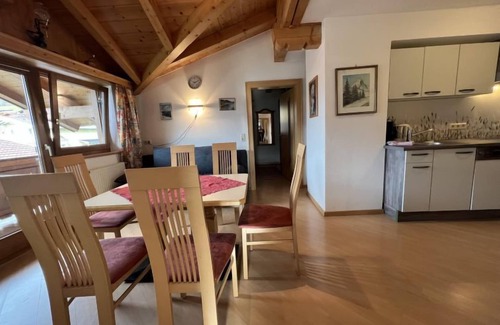 3-room apartment 50 m2 on 2nd floor. Partly with sloping ceilings, cosy furnishings: entrance hall. 2 double bedrooms. Kitchen-/living room (dishwasher, 4 ceramic glass hob hotplates, toaster, kettle, microwave, electric coffee machine) with 1 double sofabed, dining table and cable TV. Exit to the balcony. Shower, sep. WC. Balcony furniture. Side view of the mountains. Facilities: children's high chair, baby cot (extra). Internet (WiFi, free). Please note: non-smokers only. Maximum 2 pets/ dogs allowed. 50616-000107-2020