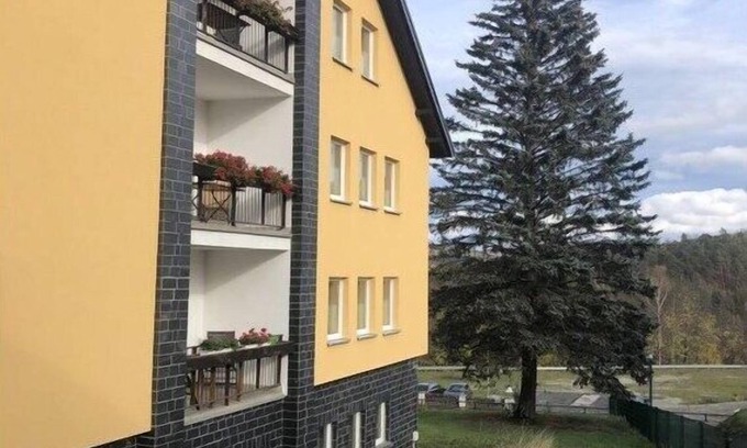 The Schwarzatal Wiesenblick holiday apartment is located in the beautiful resort of Schwarzburg, in the heart of the Schwarzatal Valley. The apartment sleeps two and features a bedroom, a bathroom with a walk-in shower and toilet, a comfortable kitchen, a large living room with a pleasant dining area, a balcony, and a terrace. The apartment is located on the ground floor or mezzanine floor of the building. The building has an elevator, and the bathrooms are wheelchair accessible.