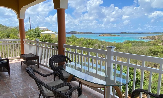 Located on the east end of the island at Scott Beach by Compass Point two minutes walk to the beach. Close to the Grocery store, Red Hook and ferry terminal.