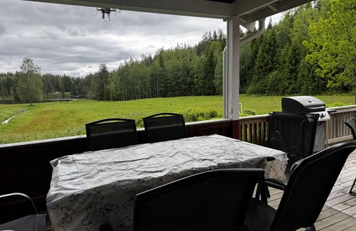 The terrace is partially covered and offers a nice view of both the lake and the forest.