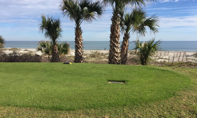This ground floor condo is located on the Amelia Island Plantation in the Sea Dunes Building. Enjoy the hundred year old Live Oak Trees that drape the roads and bike paths right next to the sea. Whether riding bikes on the miles of paved bike trails, fishing, shopping, or horseback riding on the beach, there is always something to do on the Plantation! Several restaurants are also located on the Plantation for easy dinning. Ocean front ground floor 3 bedroom/3 bath condo. Only a 25 yard walk to beach!!!! On site pool. Condo has 3 bedrooms with King beds. Outside patio with table and chairs. Large grassy area between condo and beach. Perfect for lawn games and for children to play or evening cocktails.
