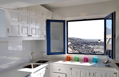 La Casa de Blas is located on the seafront in the town of La Santa, located on the 1st floor. To get there you have to go up stairs, the sea is separated by the promenade that leads to a small mixed beach of rocks and stones. The windows make you feel as if you were right on the shore of the sea and its height gives an impressive view. Your living room has a comfortable sofa with satellite TV and wifi, the kitchen is an American bar, bathroom with shower cabin. Its from 3 wonderful bedrooms. The main one, with a double bed from where the sea is heard. The second with a single bed, window with views and the third bedroom is on the top with two single beds. The 6-seater dining room at the top where the walls are large windows overlooking the sea, total relaxation and contemplation.
