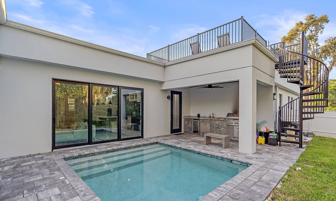 Picture this: Waking up and watching nature wake up around you as you sip your morning cup of coffee on your private canal dock, as you watch the dolphins swim around you! Then, enjoying a day on the water with the provided kayaks and paddleboards (or going to one of the nearby beaches), and ending it with a cookout at the beautiful outdoor kitchen and sipping your drink of choice around the private heated saltwater pool! Did we mention that this home boasts 2 kitchens, 2 living room spaces, and 2 laundry rooms?! Whatever your vacation plans are, this home has enough to entertain and recharge everyone in your group!