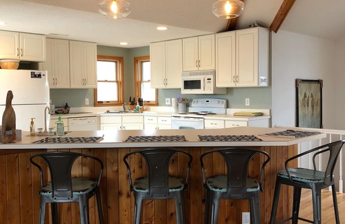 Lovingly decorated in a beach-cottage style, SEA-GO boasts over 1000 square feet of decks, two in front and one in back, with upper level views of the ocean from the front. Relax on the large hammock or swing on the shaded mid level deck. All linens included and beds made upon arrival.