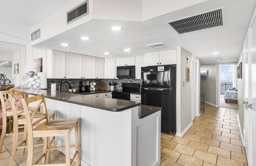 The bright and open kitchen is fully equipped for preparing your family's favorite meals, or maybe your special catch from your Port Aransas fishing adventures. The large bar countertop is perfect for serving or for the kids to sit at when eating. The kitchen features Corian countertops, a Cuisinart dual-brew (pot or single cup) coffee maker, blender, toaster, and lots of storage.