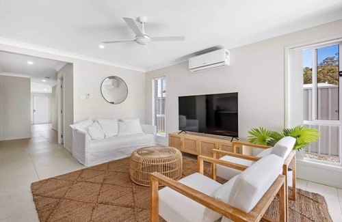 Welcome to Sea La Vie One, your pet-friendly retreat in tranquil Port Stephens. This elegant duplex offers spacious living, a gourmet kitchen, and inviting bedrooms, perfect for unwinding and making memories. Enjoy the sea breeze, and only 400m until you can take a dip in Wanda Beach and explore with family and friends.