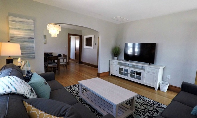 Enjoy your accommodations as much as your vacation at the Sea Level Sanctuary! The comfort of this newly renovated, beach block, street level property will be the icing on the cake of your summer getaway! The first floor has wide plank tile throughout to keep your home away from home cool, and post beach clean up easy. The second floor has refinished original hardwood floors. Central air to keep you cool on those extra warm days. Soothing and simple décor will keep you relaxed when you are ready for a break from the sun. Two spacious living areas (one on each level) with new wall mounted flat screen tvs and dining room sets. There are two bedrooms on the first floor- one features a queen bed with new foam mattress. The other has two twin beds, also with new foam mattresses. The sofa also converts to a queen size sleeper! The second floor has three bedrooms. Two bedrooms are located at opposing ends of a short hallway situated off the dining room. One features a queen bed and the other has two twin beds. The third bedroom is off the edge of the kitchen and has a queen bed. Each bedroom on this level has a ceiling fan to help accommodate differing temperature needs. One of the sofas in this living room also converts to a queen size sleeper!