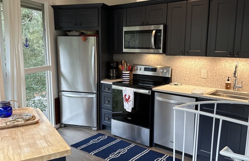 Our two bedroom, two bath villa is a nautical inspired, unique octagon shaped treehouse with floor to ceiling windows in every room. The brand new downstairs addition is the perfect spot for watching the game, curling up with a good book or rolling out a yoga mat! The patio deck is perfect for meals, cocktails or birdwatching while overlooking Calibogue Sound marsh. Keep your eyes open and you will likely see the island deer wondering by each day.