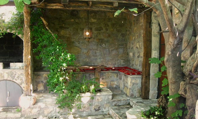 Our old stone, rustic villa, surrounded by a private, tranquil Mediterranean garden is near the beach and a great place to relax. The living area, kitchen and bathroom are on the ground floor. The sleeping area, consisting of 3 bedrooms, and a bathroom is on the second floor. The house is surrounded by a beautiful flowery garden, with an olive, mulberry and fig tree and pergolas covered with vines. The garden is hidden from sight by stone walls. The outdoor kitchen and the bathroom are also made of stone. The whole village is hidden within the oak forest. The Villa is in walking distance (only a few minutes) of the local beach. On the hilltop is Rezevici Monastery, XIII c. There is a grocery shop in the center of the village 50 m from the house, and a restaurant on the beach. Hiring a car is needed to go to the market and restaurants in Petrovac (2km) or to go to night-clubs, casinos, restaurants and concerts in Budva(20km). Banks, exchange offices and medical facilities you can find both in Petrovac and Budva.