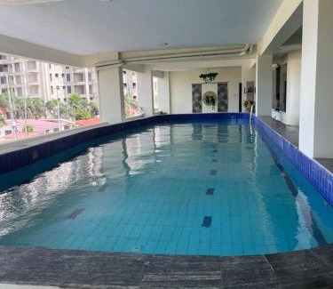 Yes, this SEA-VIEW 3-Bedroom/5-BEDS-APT has a swimming pool. Check the Facility Overview section for details about the pool and other available facilities.