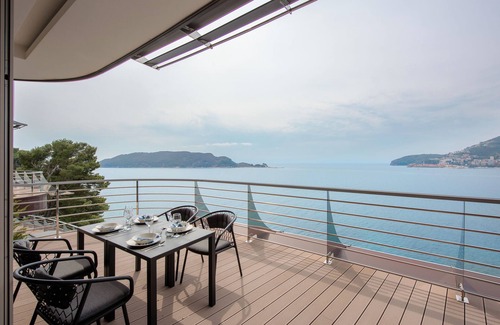 Two-bedroom apartment with stunning view over the sea located in luxury waterfront residental complex Dukley Gardens. This complex has great location on Zavala peninsula in one of the most upscale and popular touristic places of Montenegro – Budva Riviera, surrounded by the green Mediterranean gardens, on the downward slope to the sandy Adriatic shore.
