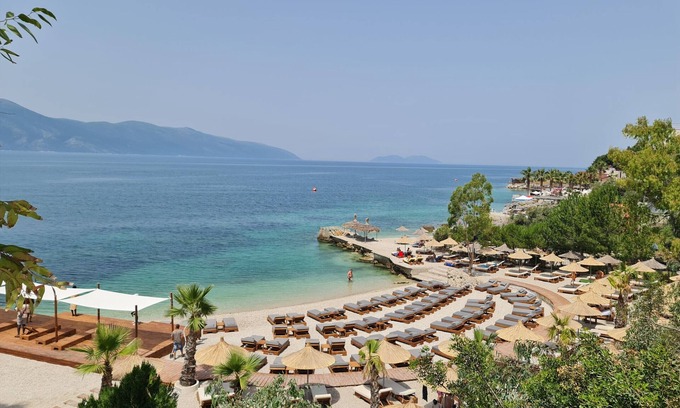 The apartment in Vlorë has 1 bedrooms and has capacity for 4 people. The apartment is nice, has new furniture, and is 48 m². The property is located 0 m from the sand beach. The house is situated in a family-friendly neighborhood next to the sea .The accommodation is equipped with the following items: washing machine, dryer, iron, safe, internet (Wi-Fi), hair dryer, balcony, air-conditioned, open-air parking the same building, 1 TV . In the hotplate of glass ceramics open plan kitchen, refrigerator, microwave, oven, freezer, dishwasher, dishes/cutlery, kitchen utensils, coffee machine, toaster, kettle and kitchenware are provided.