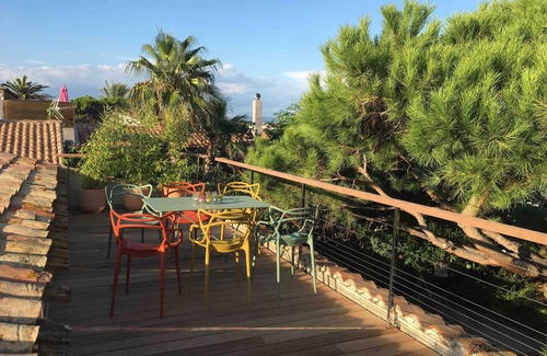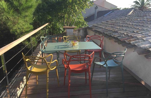 The renovation has not made it lose its charm of a typical La Capte holiday home. It is located near the sea and shops. They have two terraces, one on the sea side, under a Parassol pine, the other on the west side, under a flowered pergola.