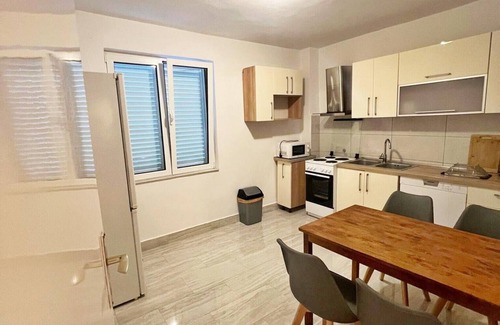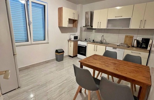 Surrounded by endless blue and a view of the crystal blue sea, these apartments are located only 10 meters from the sea. A few steps further will take you to a sandy beach in a small bay.Guests can enjoy in the yard with a view of the sea, several sets of garden furniture and a barbecue.This four bedroom apartment has three terraces with wonderful sea view. Each terrace belongs to a bedroom with private bathroom. Fourth bedroom also has a bathroom, which is accessible from the hallway. The kitchen is fully equipped to prepare any meal you like. TV is not a neccessity in an apartments with a view like this, but you can find one in the dining room. :)Kampor is a perfect combination of different natural beauties, with its beautiful beaches and the Dundo forest reserve.Guests of this beautiful place have the opportunity to enjoy numerous hiking and biking trails, and thus enjoy beautiful nature and interesting architecture.One of the oldest libraries with a collection of the Croatian written word is located in this place, as well as an ethnographic museum (former Franciscan monastery of St. Euphemia).Local parties are held on Easter Monday and September 16, the feast of Saint Euphemia.Explore the Old Town Rab (5 km) with it's many narrow streets and traditional buildings - it will surely leave you breathless.Enjoy the local cuisine in one of the restaurants on the island - we definitely recommend trying some traditional seafood. Nearest restaurant is 200 m away from the building. Park-forest Komrcar is great for a walk during a hot summer day, as the tall trees provide the much needed shade.